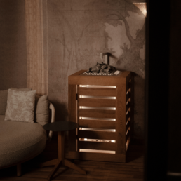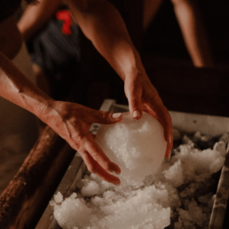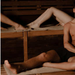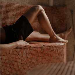 • Aufguss in Sauna Finlandese, con movimenti rituali che diffondono calore e aromi.