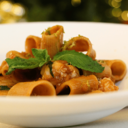 • Mezzo pacchero alla cascina (salsa di barbabietola,carciofi e zucca)