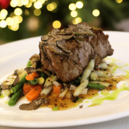 • Filetto di manzo con demi-glace al tartufo nero e julienne di verdure miste
