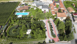 Wine Resort con 76 camere che presto diventeranno 110, una SPA termale con Vinoterapia, una villa padronale seicentesca che ospita il Ristorante Borgo Antico, un parco per attività outdoor, una chiesetta romanica per matrimonie un Centro Congressi di impatto per ogni tipologia di meeting, riunioni ed eventi aziendali.