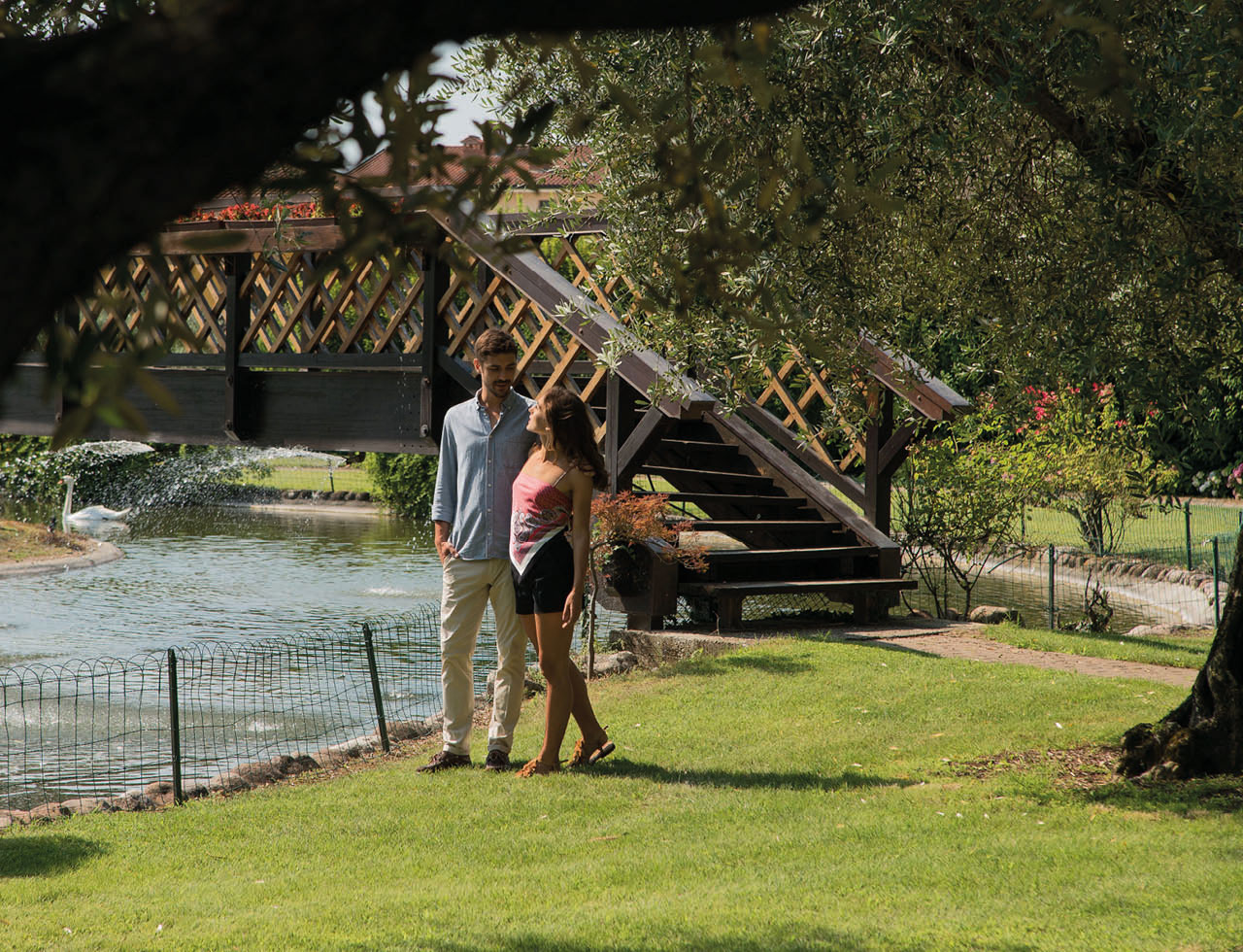 Tra un momento di benessere e un calice di Valpolicella, concediti una passeggiata nel verde: alberi secolari e un laghetto che invita a rallentare. È il lato più silenzioso di Villa Quaranta, da vivere con calma.