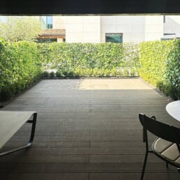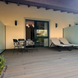 patio privato 30 mq attrezzato con tavolo, sedie e lettini